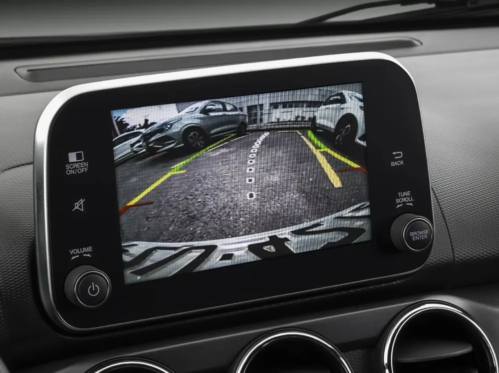 Al colocar la marca atrás,. una cámara transmitirá el recorrido de tu maniobra a la central multimedia, mientras que el sensor de estacionamiento te avisará de forma sonora en caso de un obstáculo.